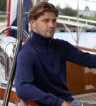 This classic jumper for men has a collar and a half zip. The CODE-ZERO logo on the back and the eyelet on the sleeve are enough for this jumper as subtle details. The Maritime pullover is perfect in combination with a polo or shirt with jeans or chino for a casual look.