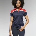 Polo with contrast colour yoke and button fastener with concealed buttons. The fabric has good moisture-wicking properties and UV protection and is designed for an active lifestyle. 100% polyester.