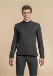 Men's long sleeve polo shirt, fitted cut, Mao collar.