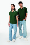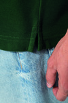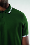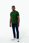100% cotton. Heathered colors: 92% cotton / 8% viscose. Combed cotton. Piqué knit. Straight cut. Two-button placket in matching colors. Neck tape in main fabric. Side vents with main fabric binding. Ribbed trim with contrasting piping at the collar and cuffs. Double-needle hem.