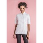 Women's chef's jacket with a stand-up collar. Side closure. Hidden snap fasteners.