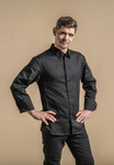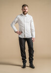 Men’s chef jacket with shirt collar.